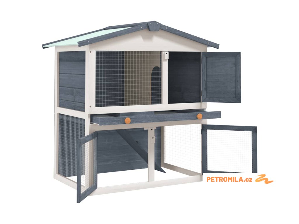 Zahradní králíkárna 3 dvířka šedá dřevěná