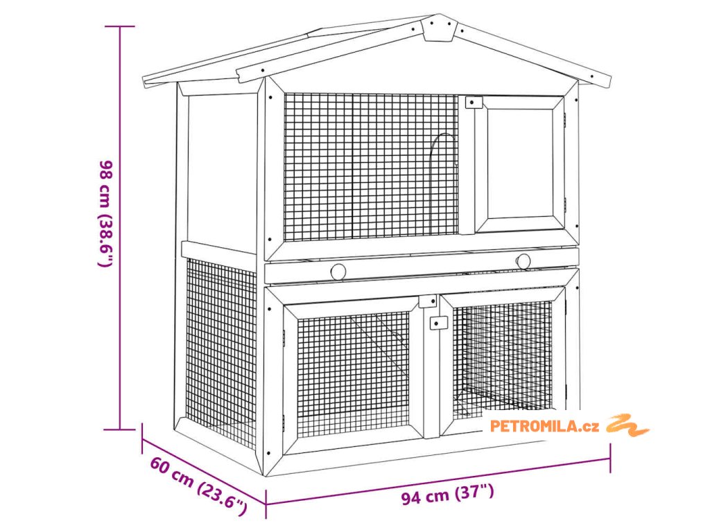 Tato kvalitní dvoupatrová králíkárna poskytuje velké útulné místo pro chov malých zvířat, zejména roztomilých králíčků. Má několik způsobů využití: hraní, pohyb, trénink nebo bezpečný pobyt vašich zvířat.