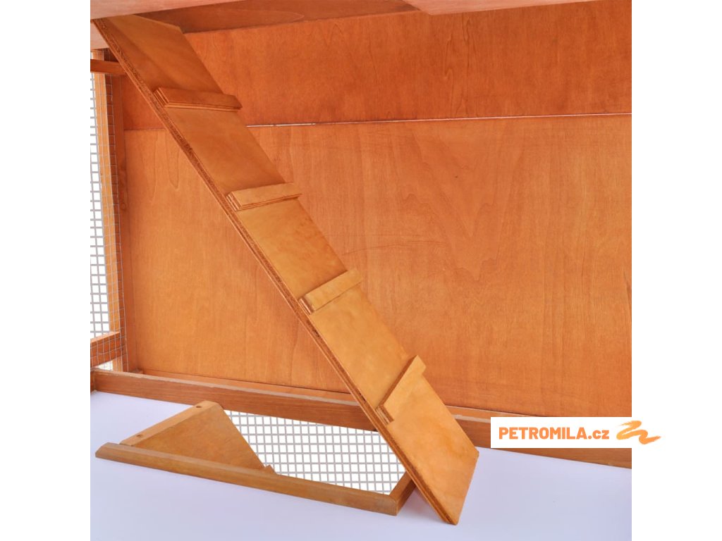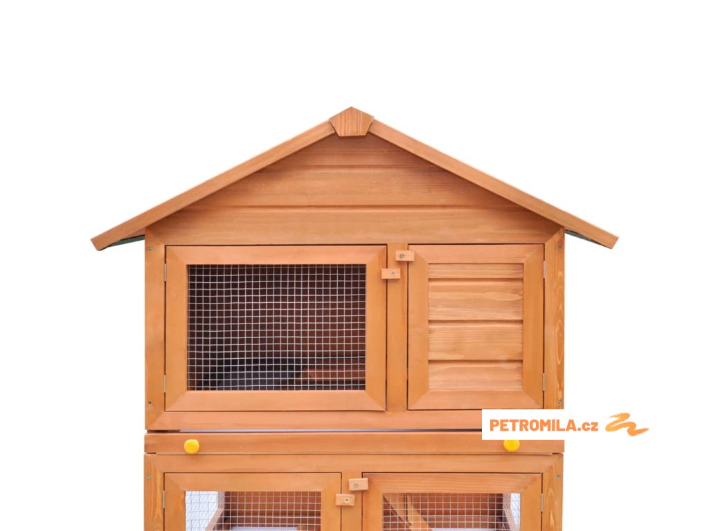 Králíkárna je vyrobena z vysoce kvalitního dřevěného rámu, takže poskytuje pevné a bezpečné přístřeší, které vydrží po celé roky. Její zelená střecha nepropouští déšť a útulný pelíšek uvnitř je skvělý na spaní. Z přízemí vede do patra nakloněná rampa, po které se dá snadno vylézt. Výsuvný zásobník usnadňuje čištění. Dvířka se snadno zavírají a dají se zajistit posuvnou západkou.