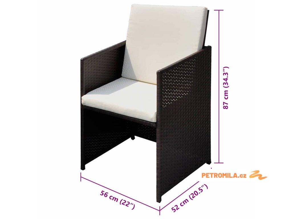 Zahradní křesla 3 pcs Hnědá 56 x 52 x 87 cm Poly ratan