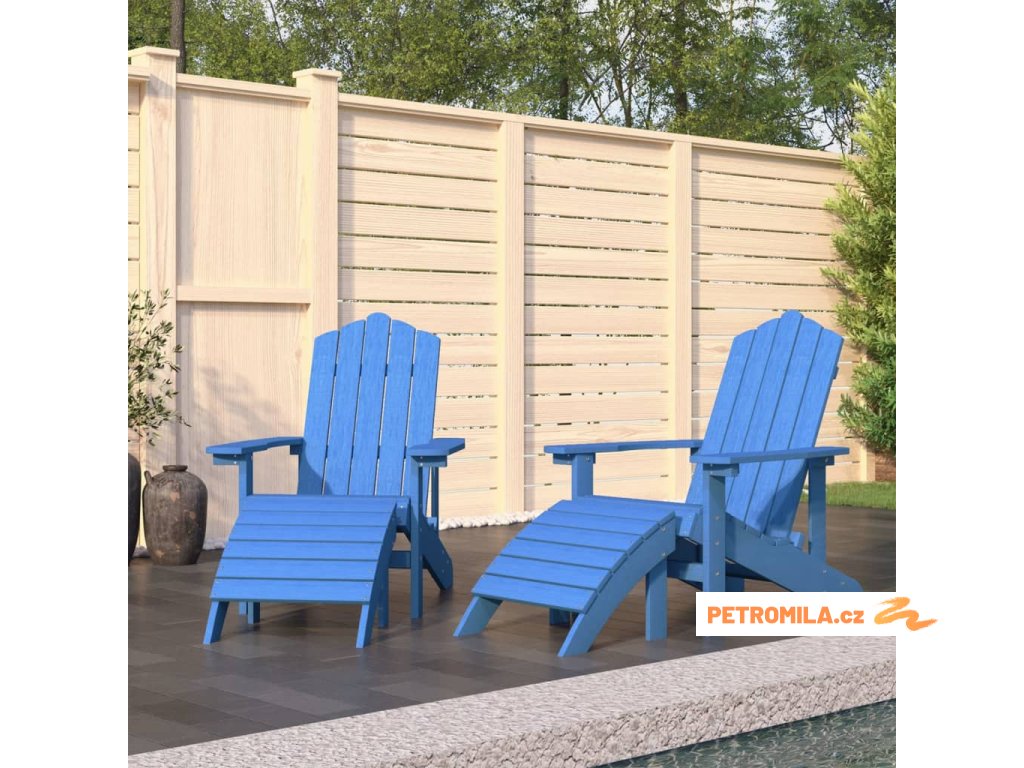 Zahradní křesla Adirondack 2 ks s podnožkami HDPE akvamarínová