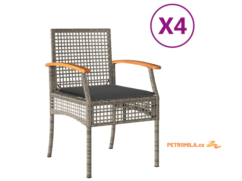 Zahradní křesla s poduškami 4 ks šedá polyratan akácie