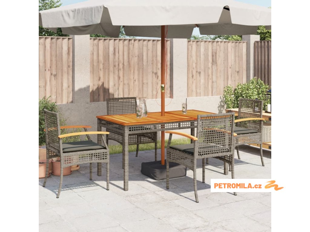 - Materiál: PE ratan, práškově lakovaná ocel, masivní akáciové dřevo s přírodní povrchovou úpravou