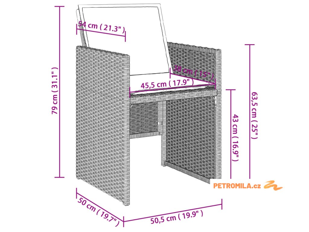 - Rozměry sedáku: 45,5 x 38 cm (Š x H)