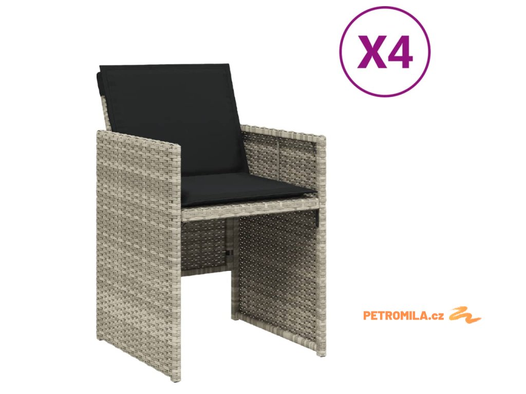 Zahradní křesla s poduškami 4 ks světle šedá polyratan