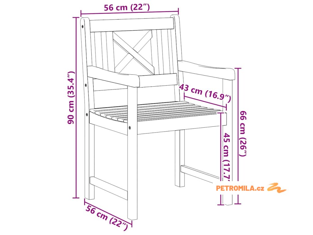 - Materiály: Židle je z kvalitního masivního akáciového dřeva, známého svou odolností a stylovým vzhledem. Textura dřeva jí dodává hezký vizuální dojem a je odolná vůči rozmarům počasí.
