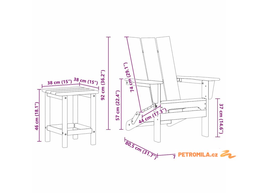 - 1 x Zahradní stůl: 38 x 38 x 46 cm (D x Š x V)