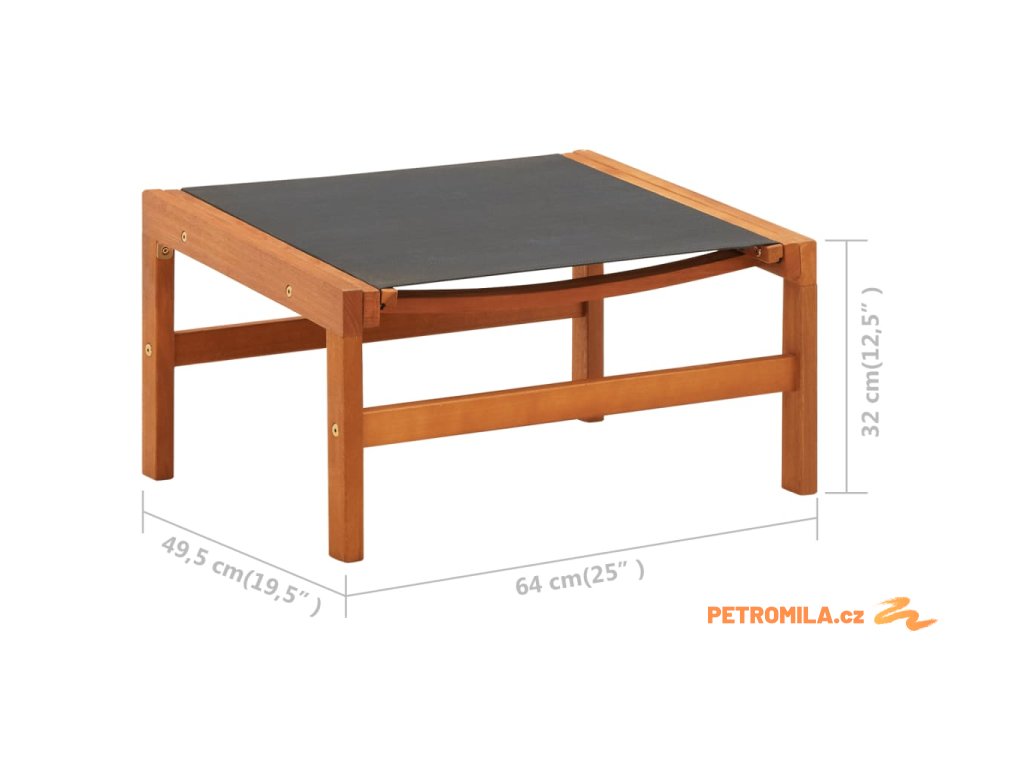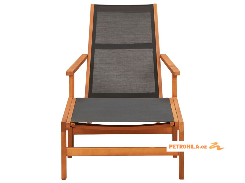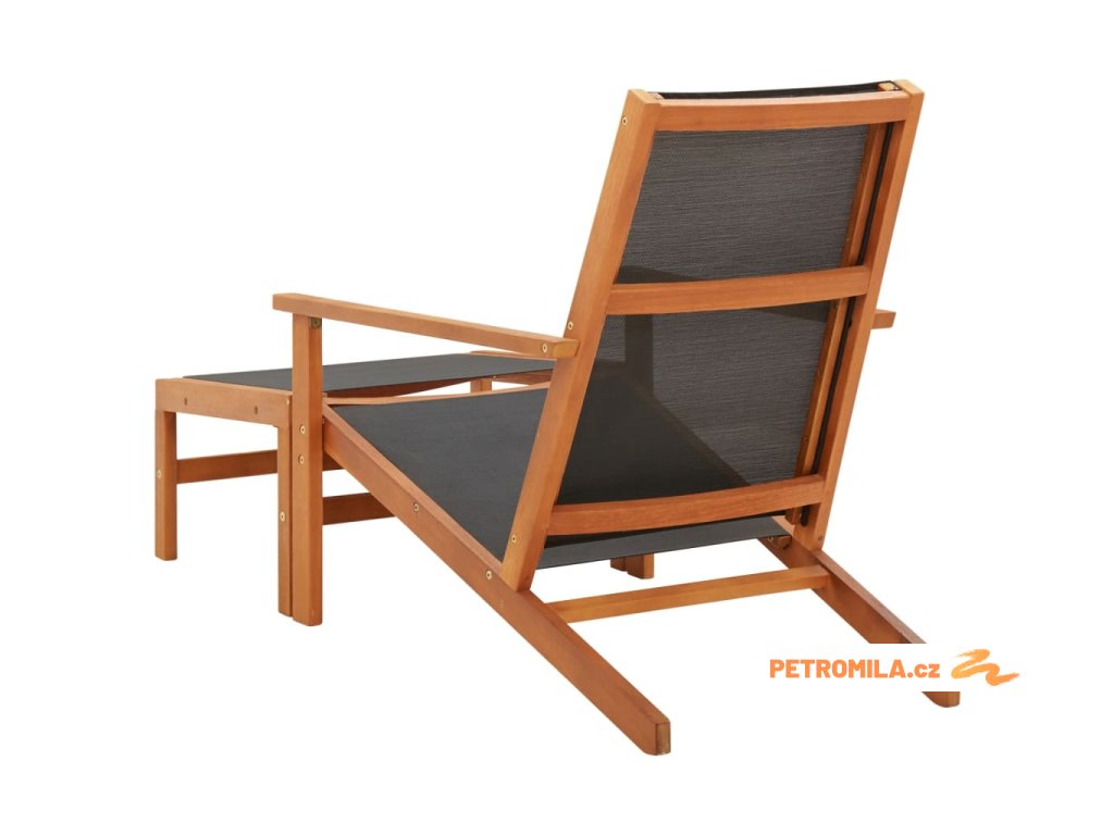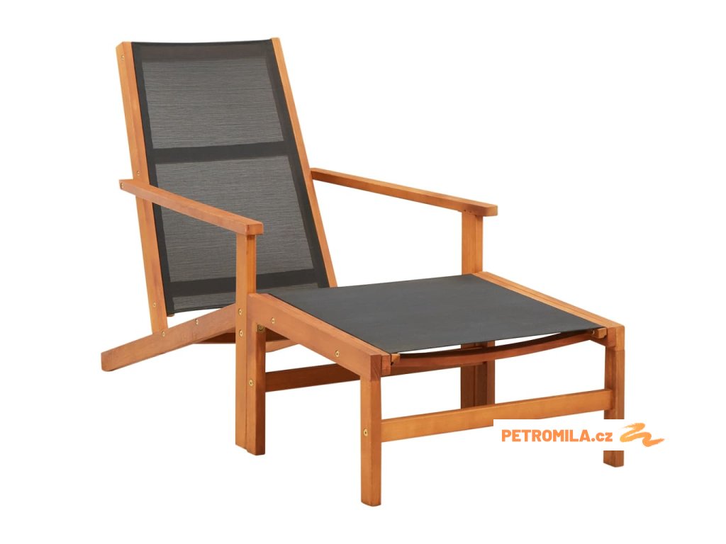 Zahradní křeslo s podnožkou černé masivní eukalyptus a textilen