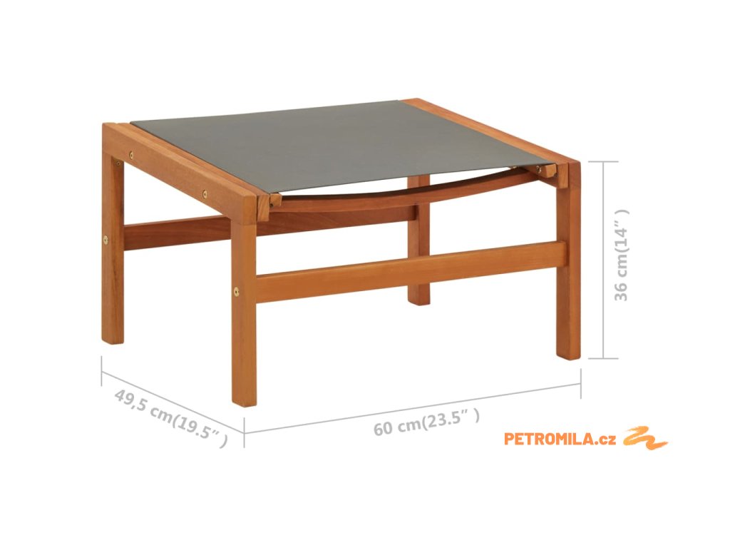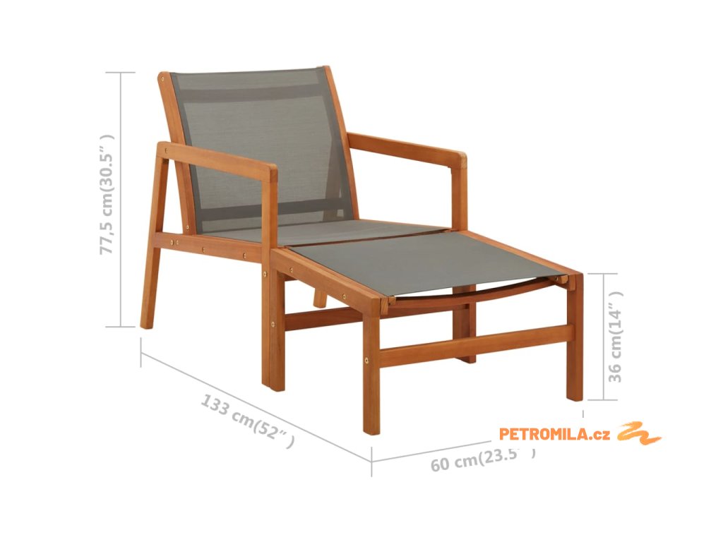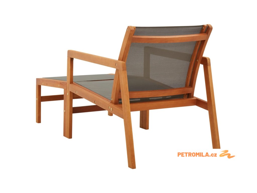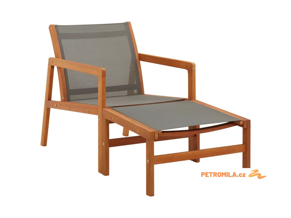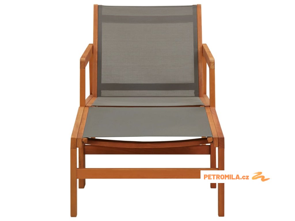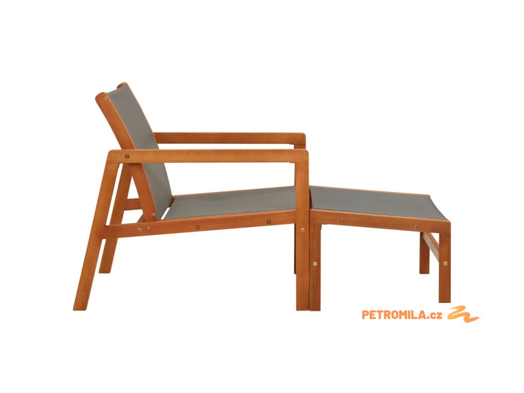 Zahradní křeslo s podnožkou šedé masivní eukalyptus a textilen
