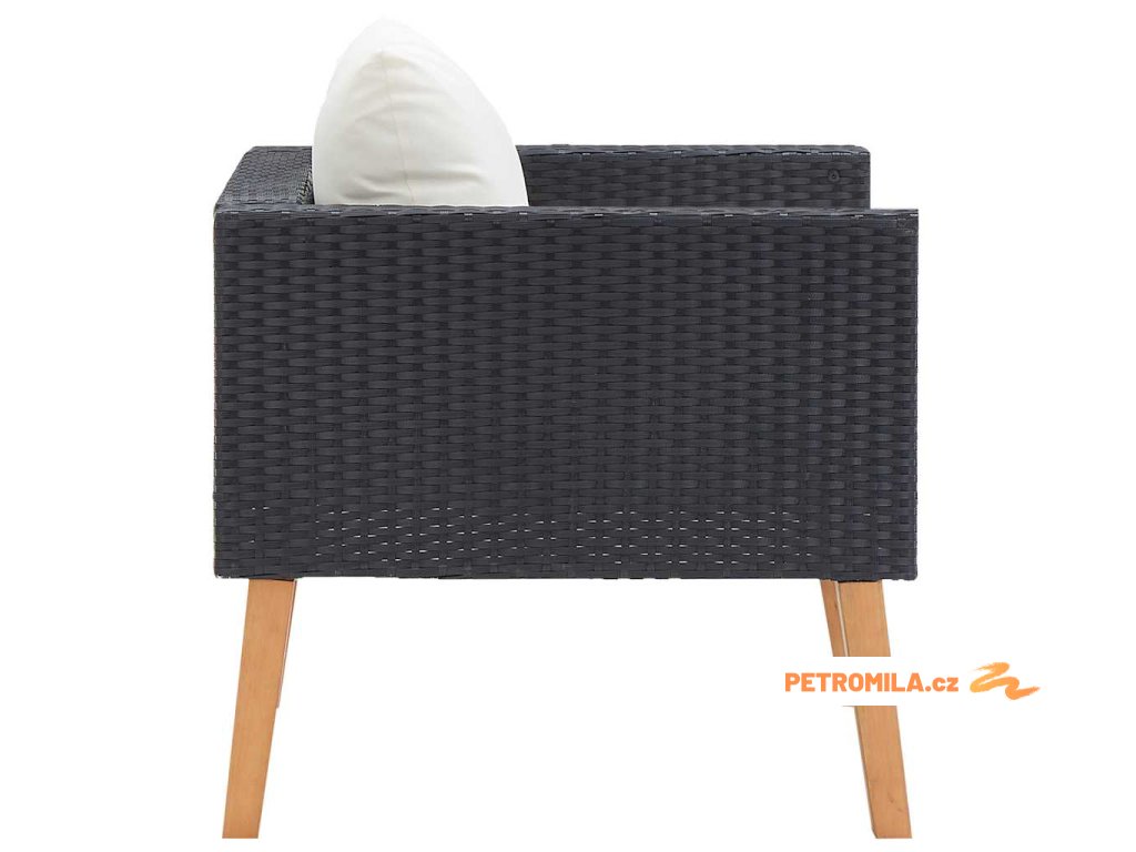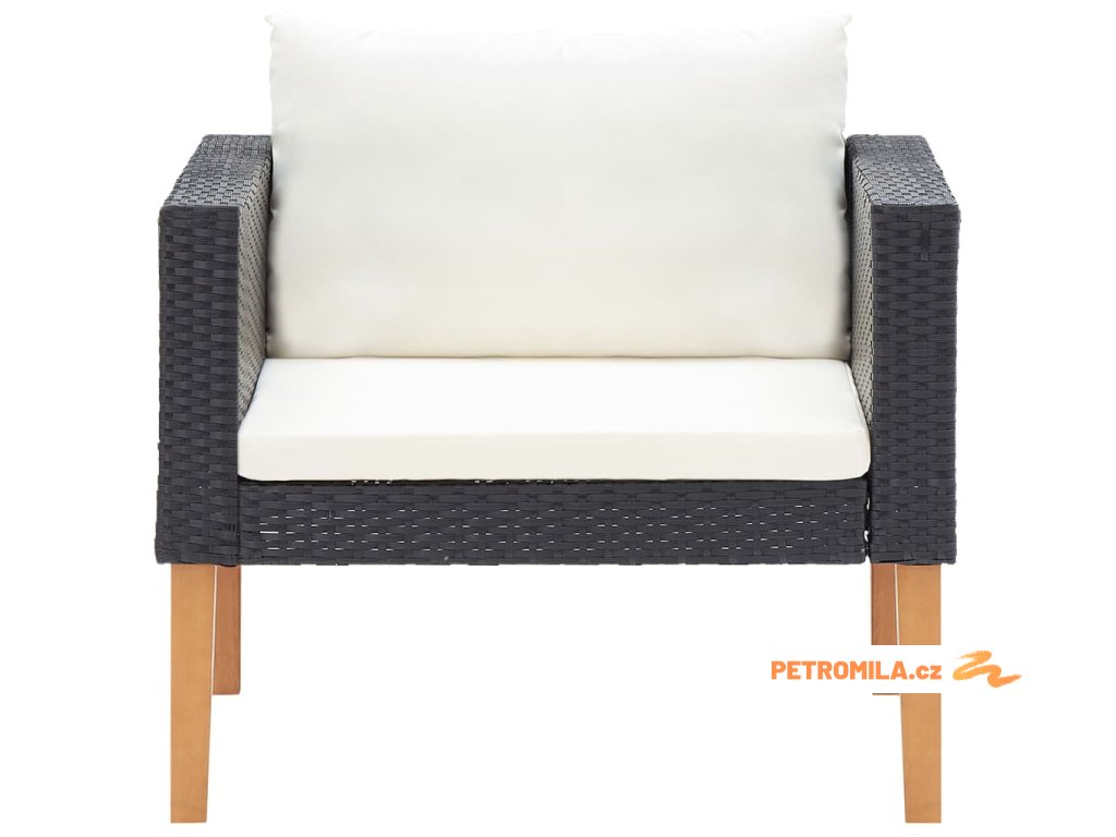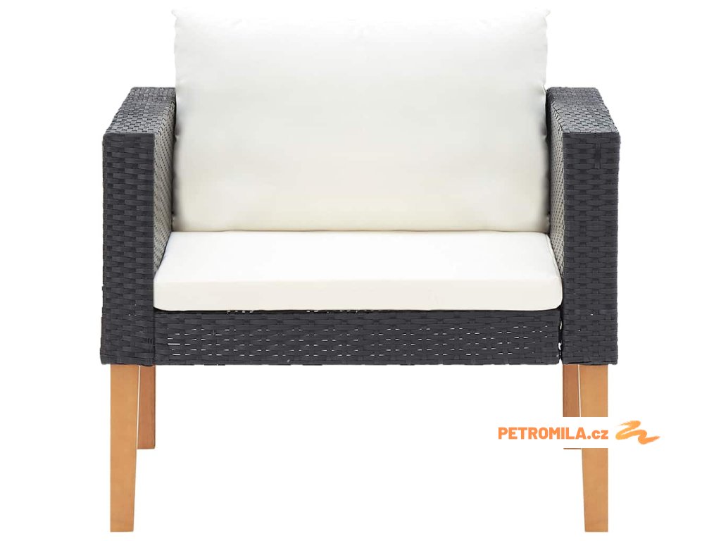 - Materiál: PE ratan, práškově lakovaná ocel, textil (100% polyester), eukalyptus s povrchem, který vypadá jako teak