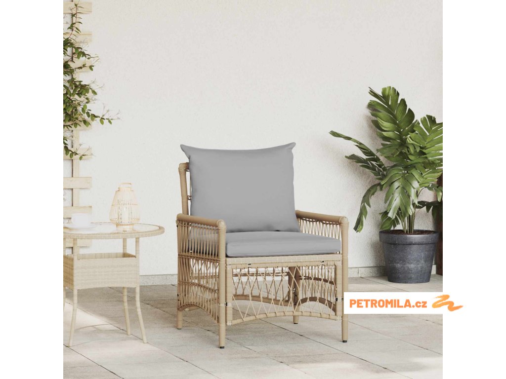 Zahradní křeslo s polštářem Béžová 73 x 61 x 77 cm polyratan