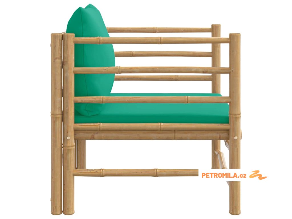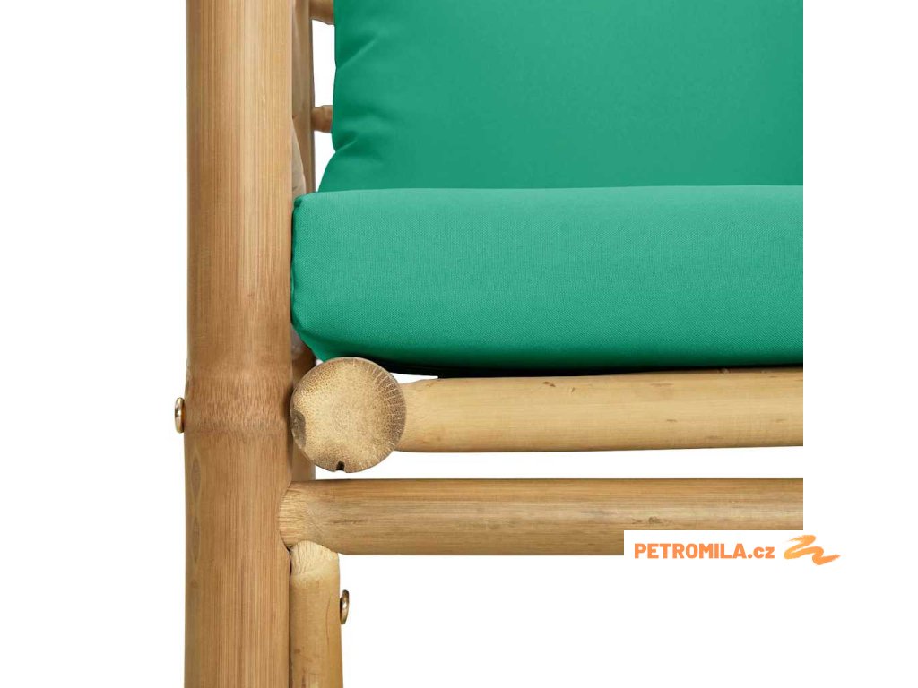 Zahradní křeslo se zelenými poduškami bambus