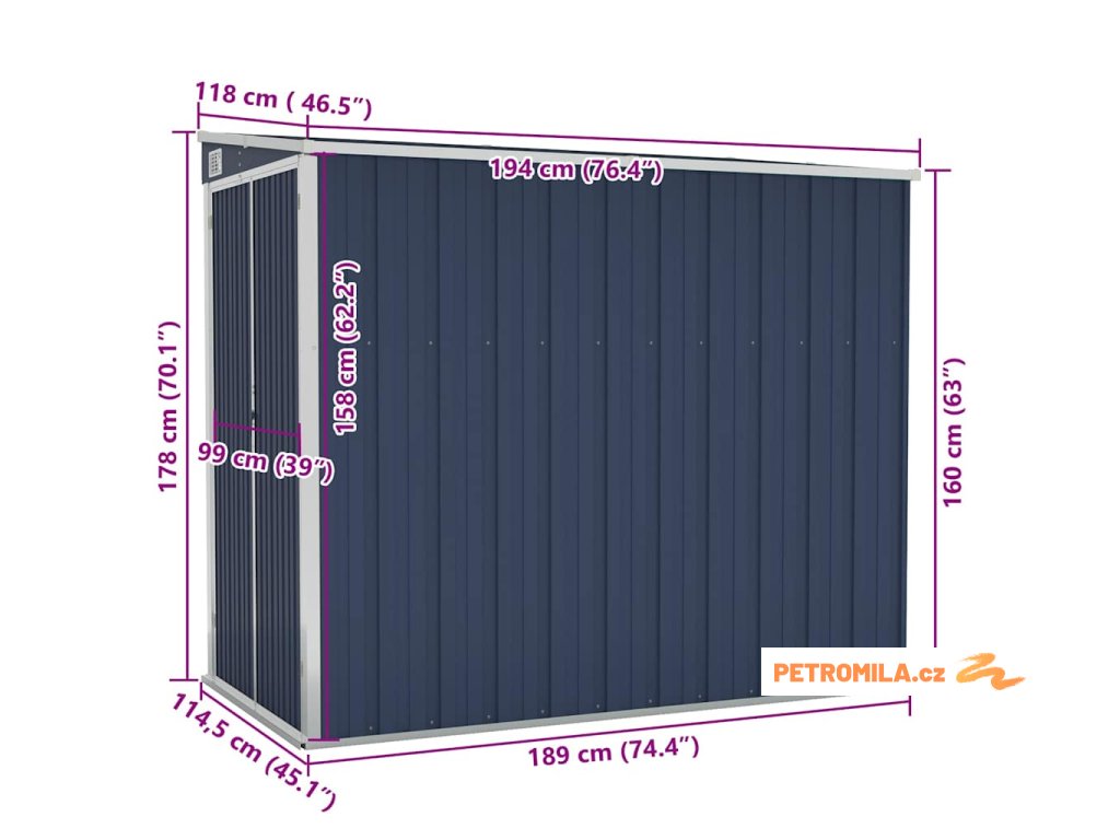 Zahradní kůlna antracitová 191 x 470 x 198 cm pozinkovaná ocel