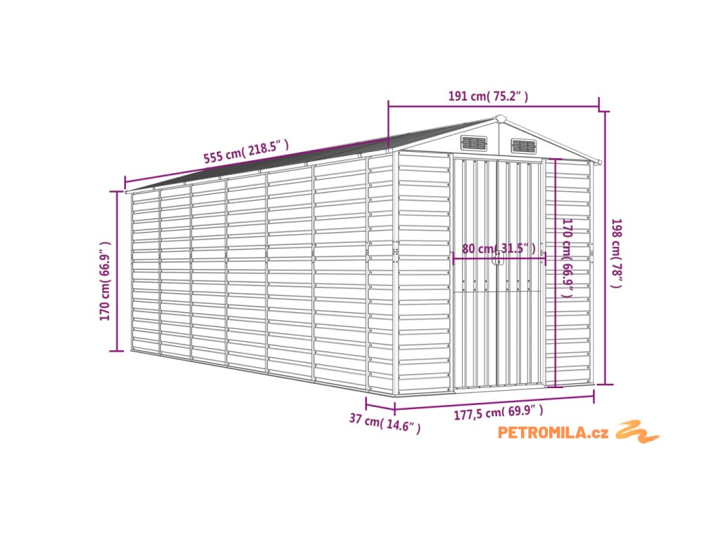 Zahradní kůlna antracitová 191 x 555 x 198 cm pozinkovaná ocel