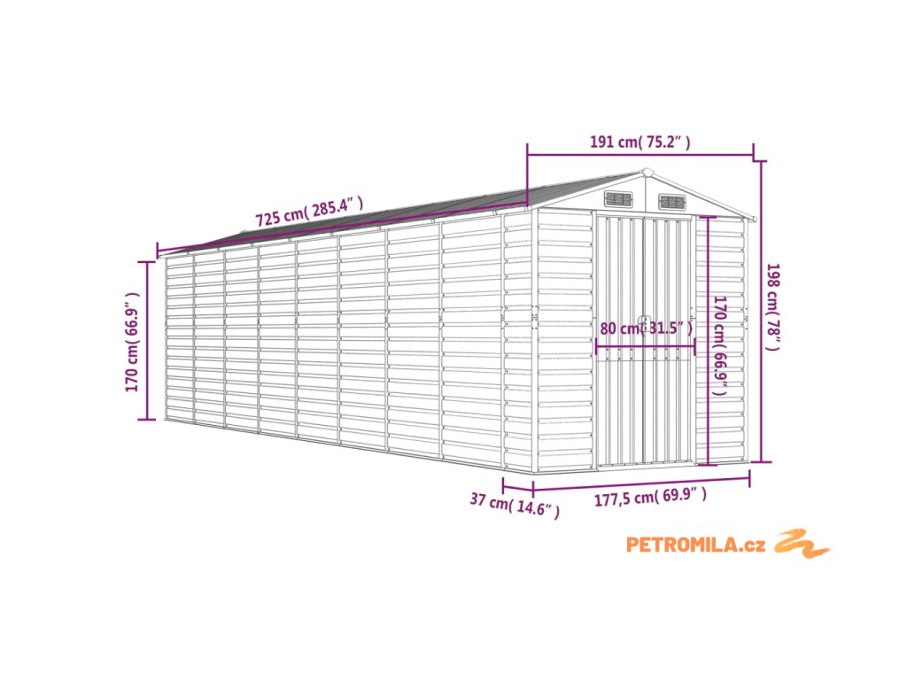 Zahradní kůlna antracitová 191 x 725 x 198 cm pozinkovaná ocel