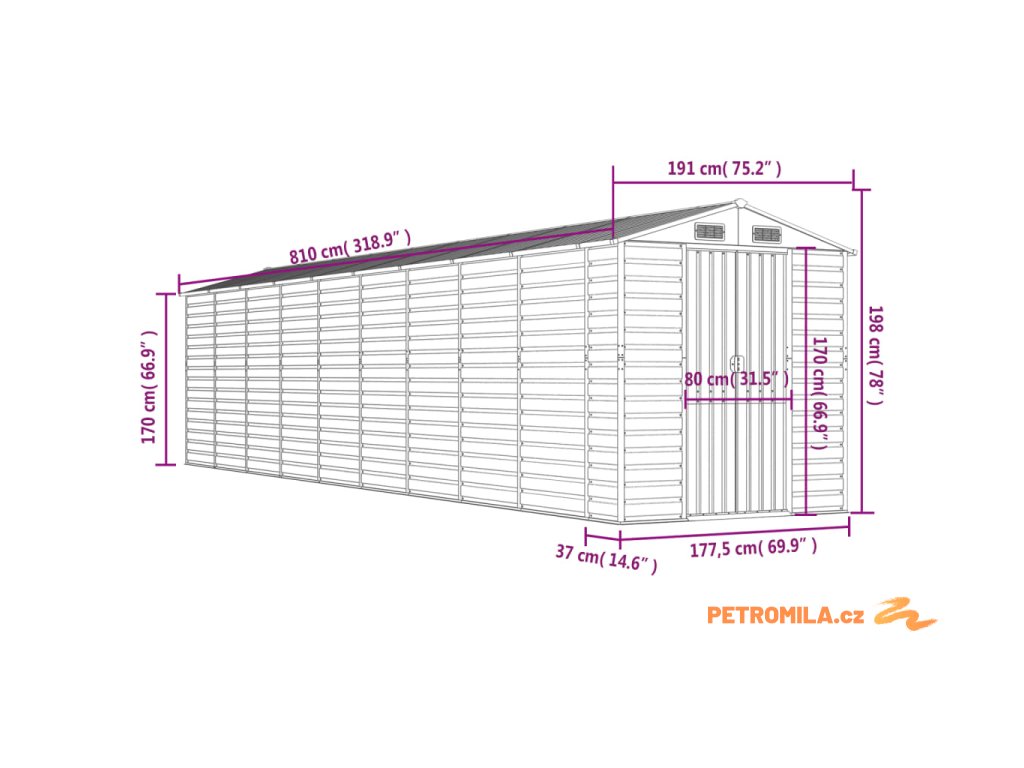 Zahradní kůlna antracitová 191 x 810 x 198 cm pozinkovaná ocel
