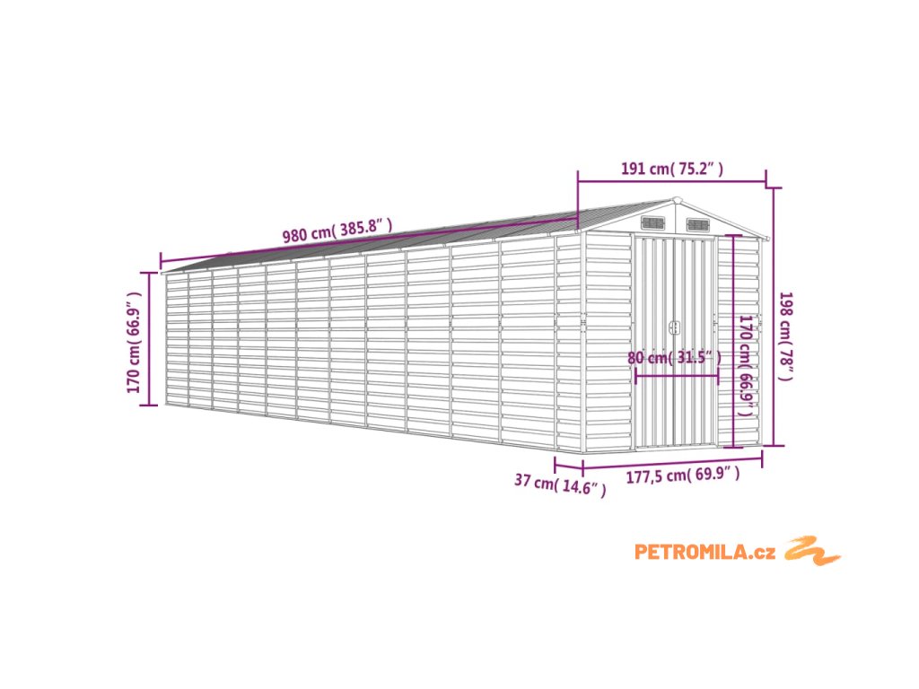 Zahradní kůlna antracitová 191 x 980 x 198 cm pozinkovaná ocel
