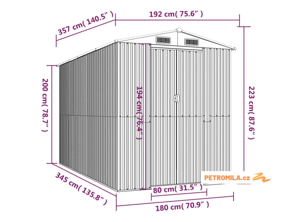 Zahradní kůlna antracitová 192 x 357 x 223 cm pozinkovaná ocel