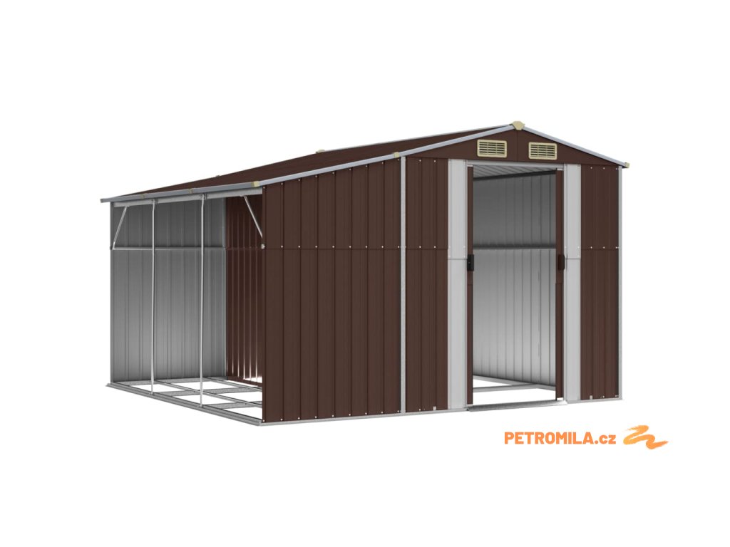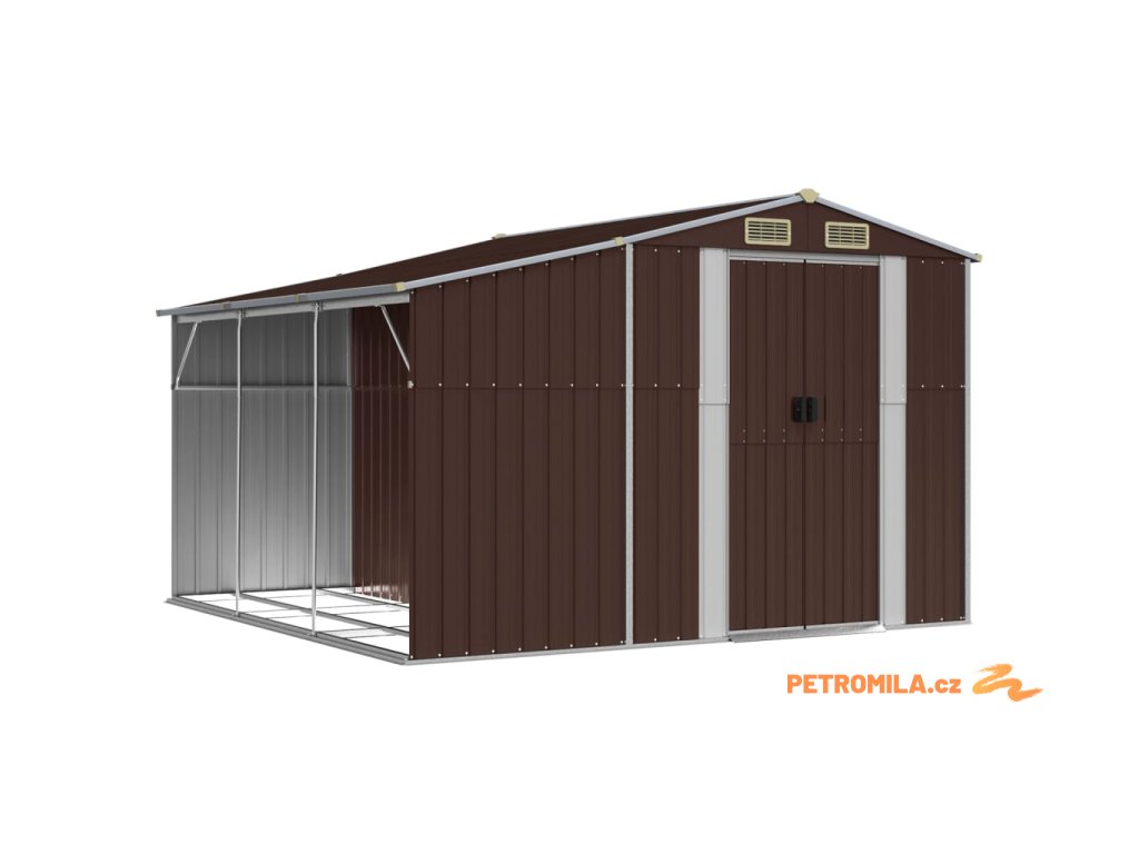 Nástěnný zahradní domek hnědý 118 x 382 x 178 cm pozinkovaná ocel