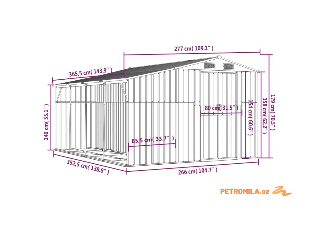 Zahradní kůlna antracitová 277 x 279 x 179 cm pozinkovaná ocel