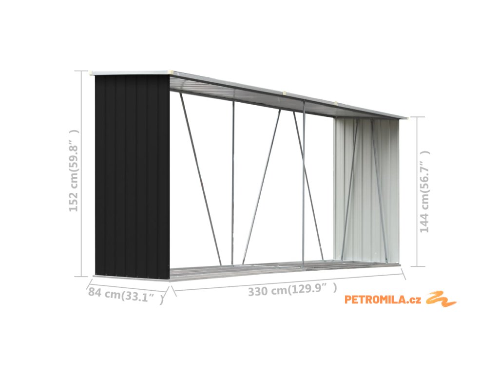 Zahradní kůlna na dříví pozinkovaná ocel 330x84x152 cm antracit