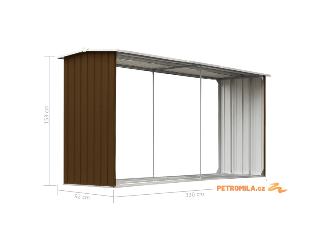 Zahradní kůlna na dříví pozinkovaná ocel 330x92x153 cm hnědá