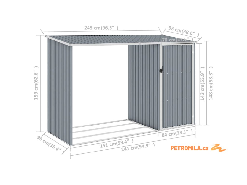 Zahradní kůlna na dříví šedá 245 x 98 x 159 cm pozinkovaná ocel