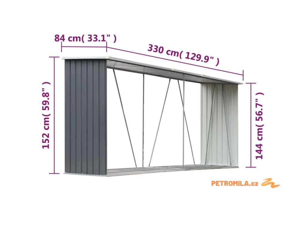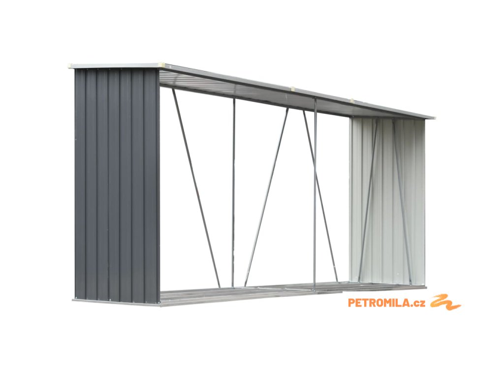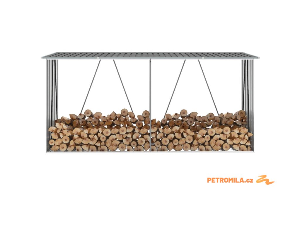 Zahradní kůlna na dříví z pozinkové oceli 330x84x152 cm šedá