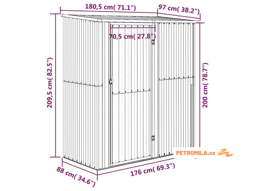 Zahradní domek na nářadí antracit 225x89x161cm pozinkovaná ocel