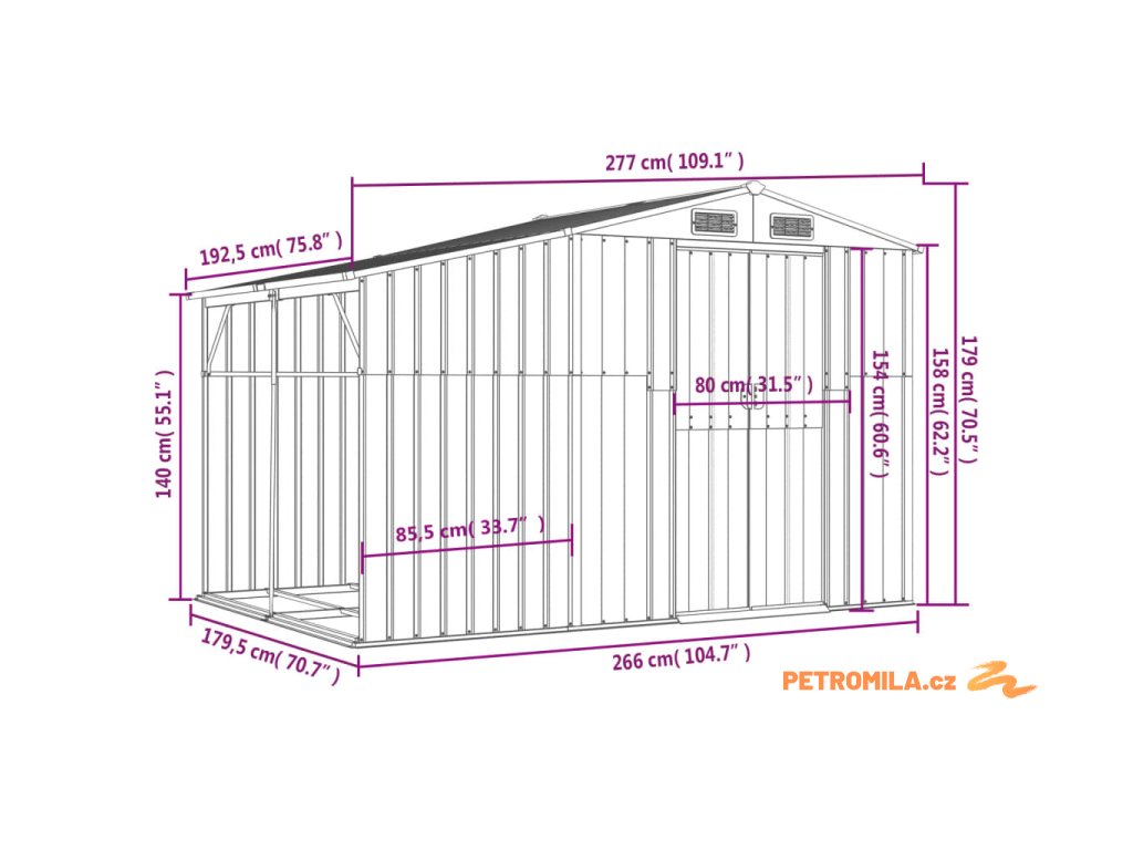 Zahradní kůlna antracitová 277x365,5x179 cm pozinkovaná ocel
