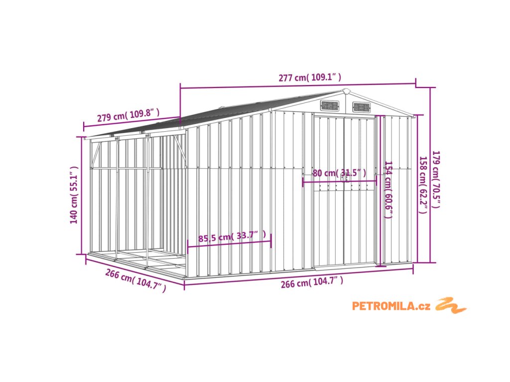 Zahradní kůlna šedá 277 x 279 x 179 cm pozinkovaná ocel