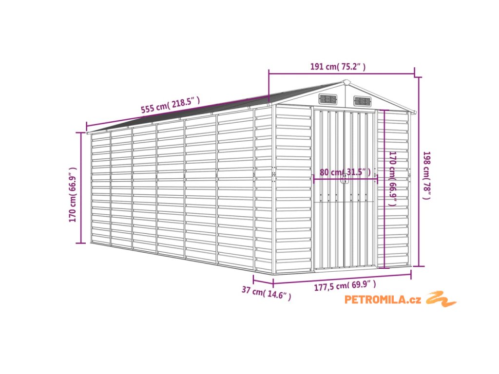 Zahradní kůlna antracitová 191 x 555 x 198 cm pozinkovaná ocel
