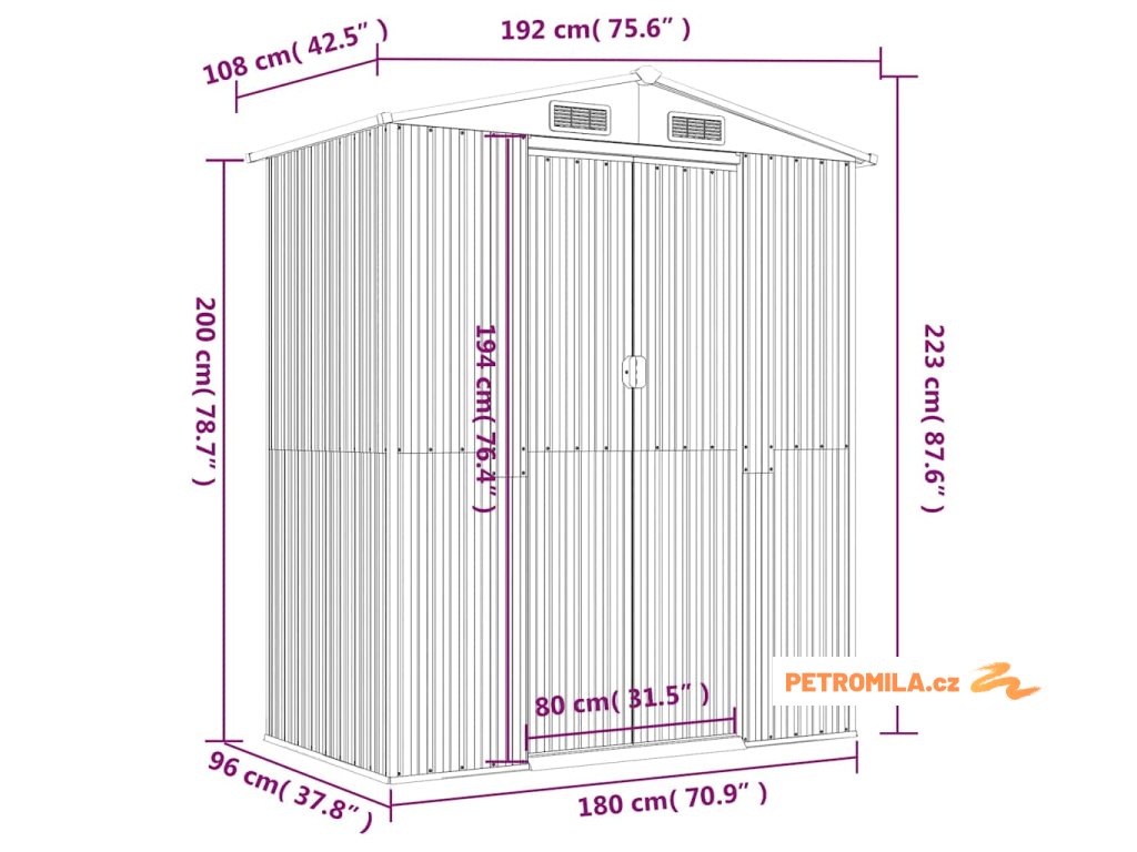 Zahradní kůlna antracitová 191 x 385 x 198 cm pozinkovaná ocel