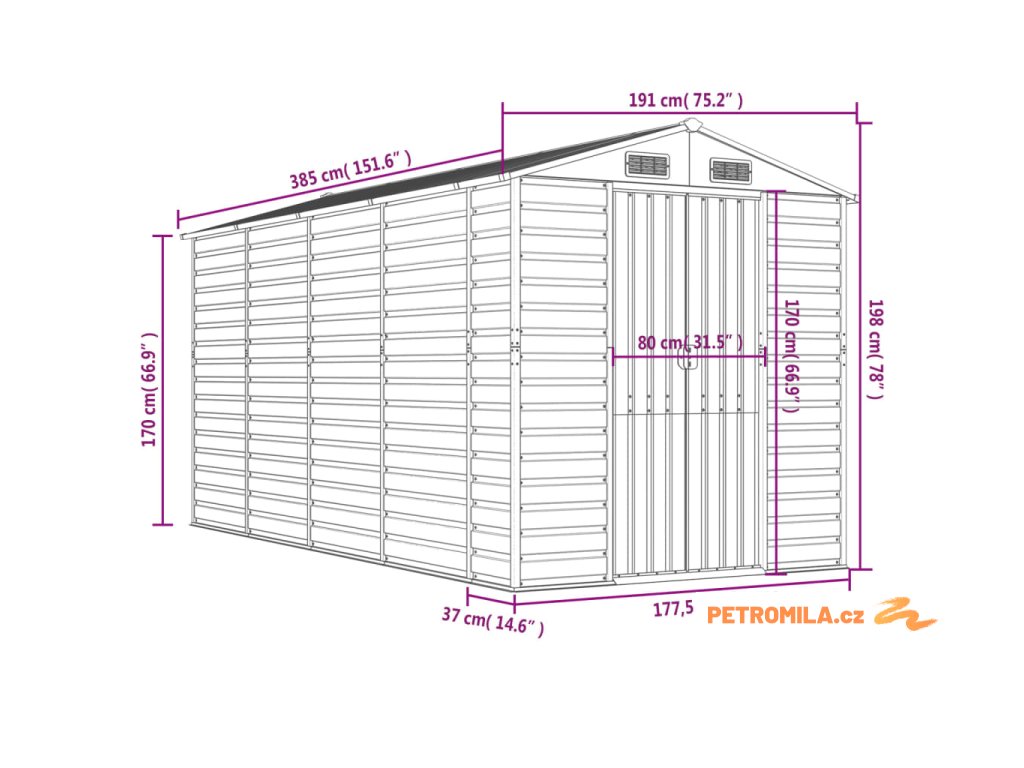 - Dostatek úložného prostoru: Tato kovová kůlna poskytuje dostatek prostoru pro uložení palivového dřeva, zahradního nářadí, nábytku, vybavení a dalších věcí.