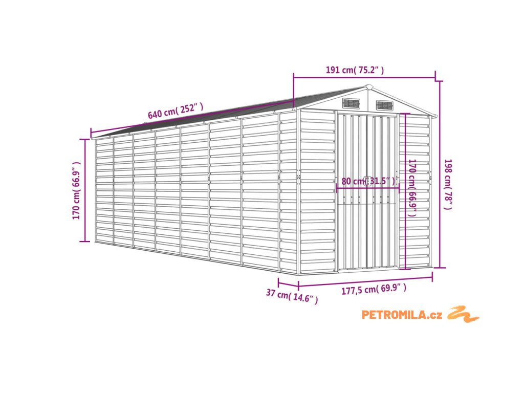 - Dostatek úložného prostoru: Tato kovová kůlna poskytuje dostatek prostoru pro uložení palivového dřeva, zahradního nářadí, nábytku, vybavení a dalších věcí.