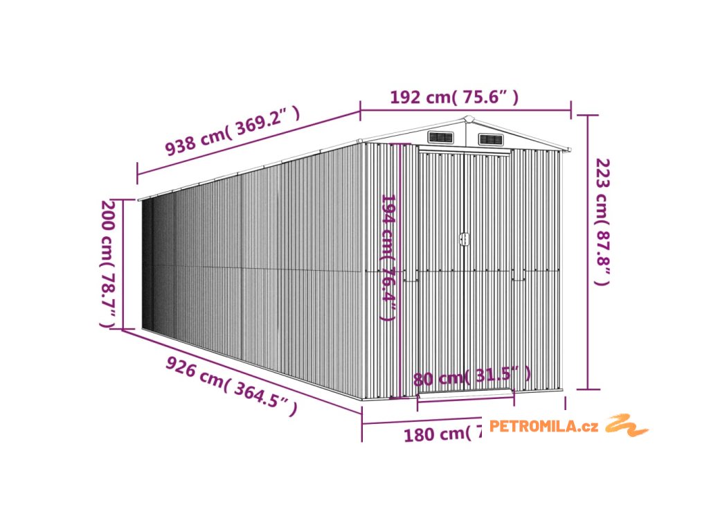 Zahradní kůlna antracitová 191 x 980 x 198 cm pozinkovaná ocel