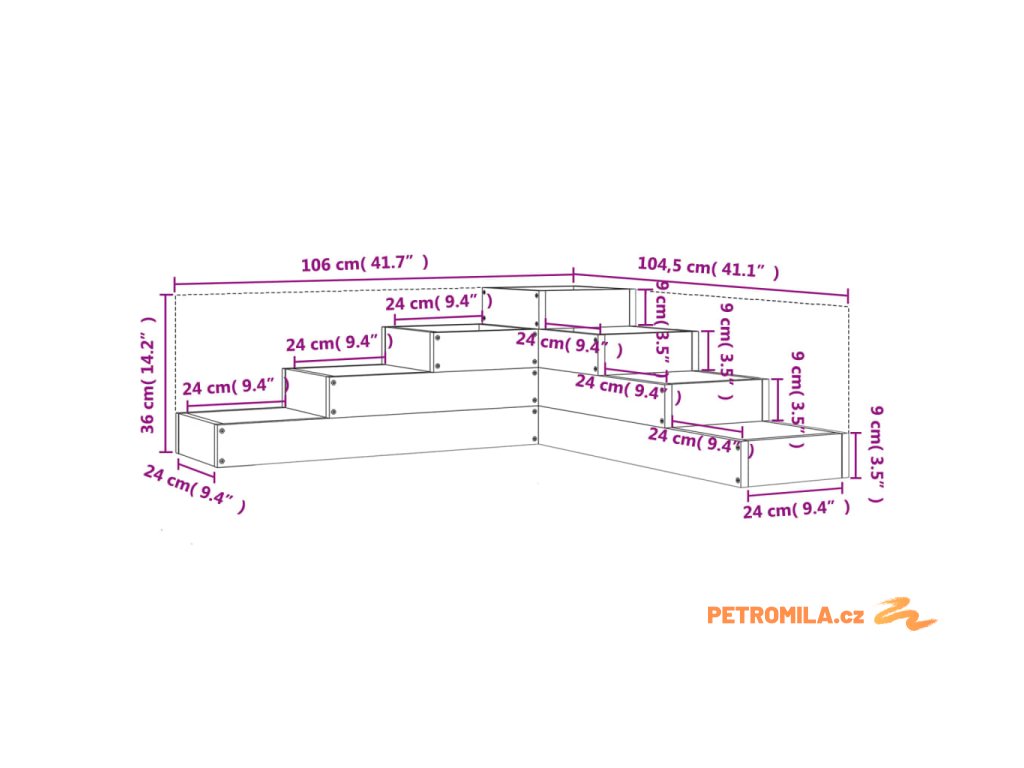 Zahradní květináč 4patrový 106 x 104,5 x 36 cm masivní borovice