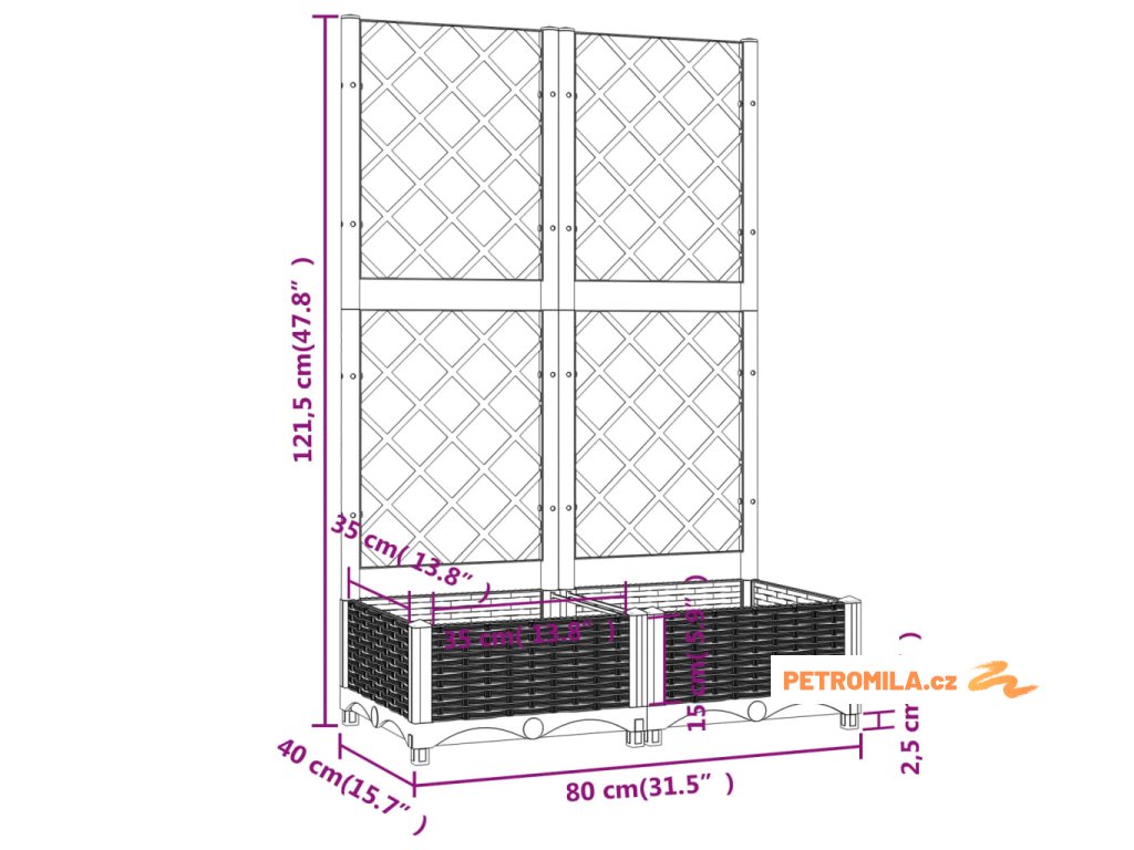 Zahradní květináč s mřížkou černý 80 x 40 x 121,5 cm PP