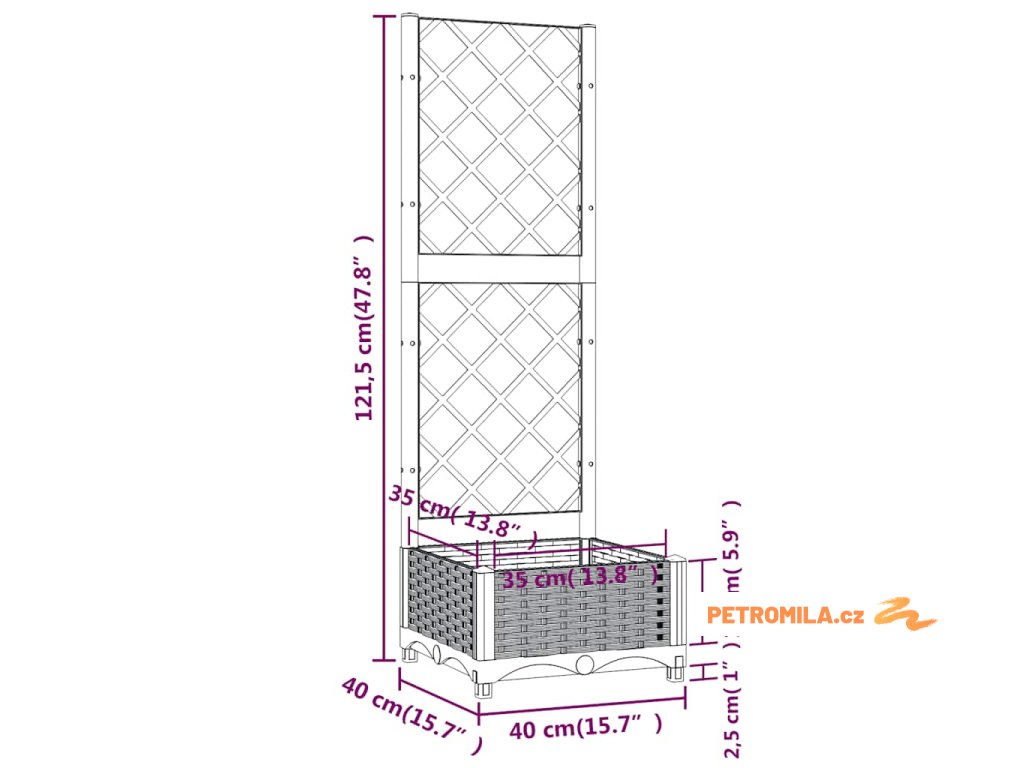 Tento květináč je vyroben z odolného PP, pevného a robustního a vhodný pro venkovní použití. Spodní truhlík pojme velké množství zelených rostlin a květin. Integrovaná treláže nabízí skvělou oporu pro pěstování popínavých rostlin, jako jsou rajčata, hrášek a růže.