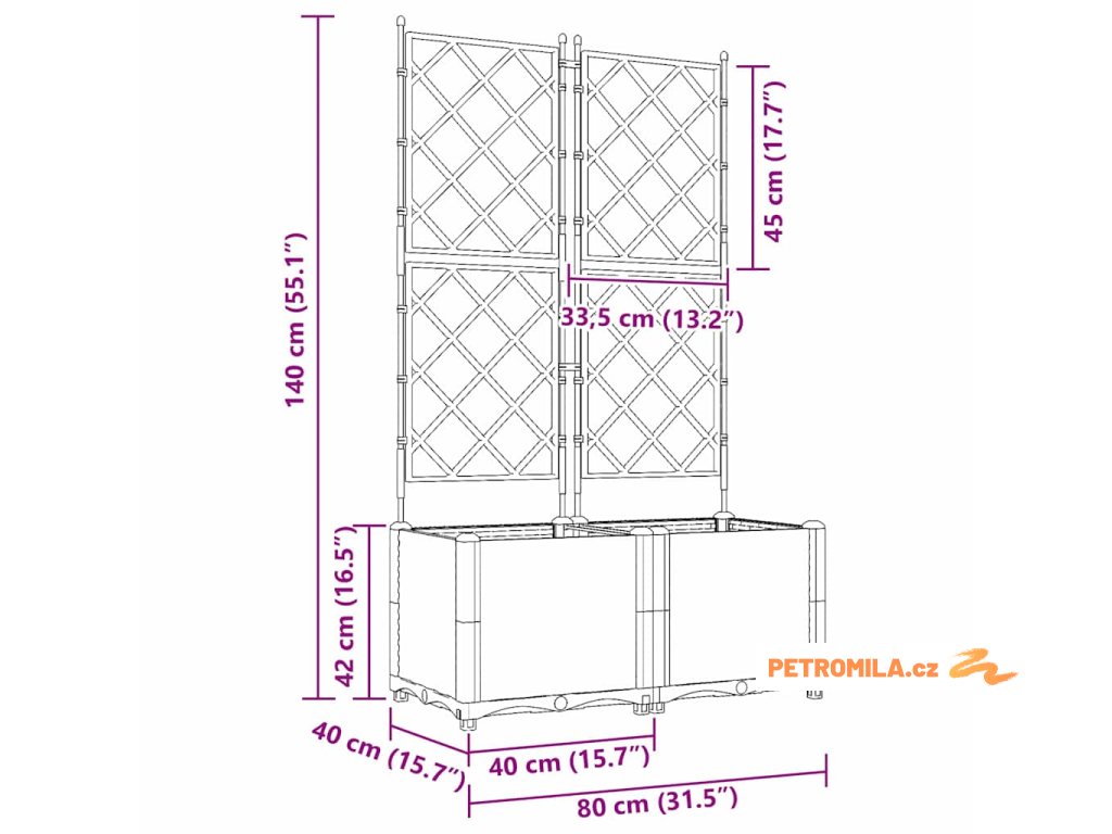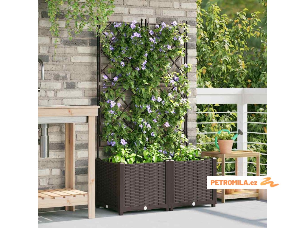 Zahradní květináč s trellisem 2 pcs Hnědá 80 x 40 x 143 cm PP