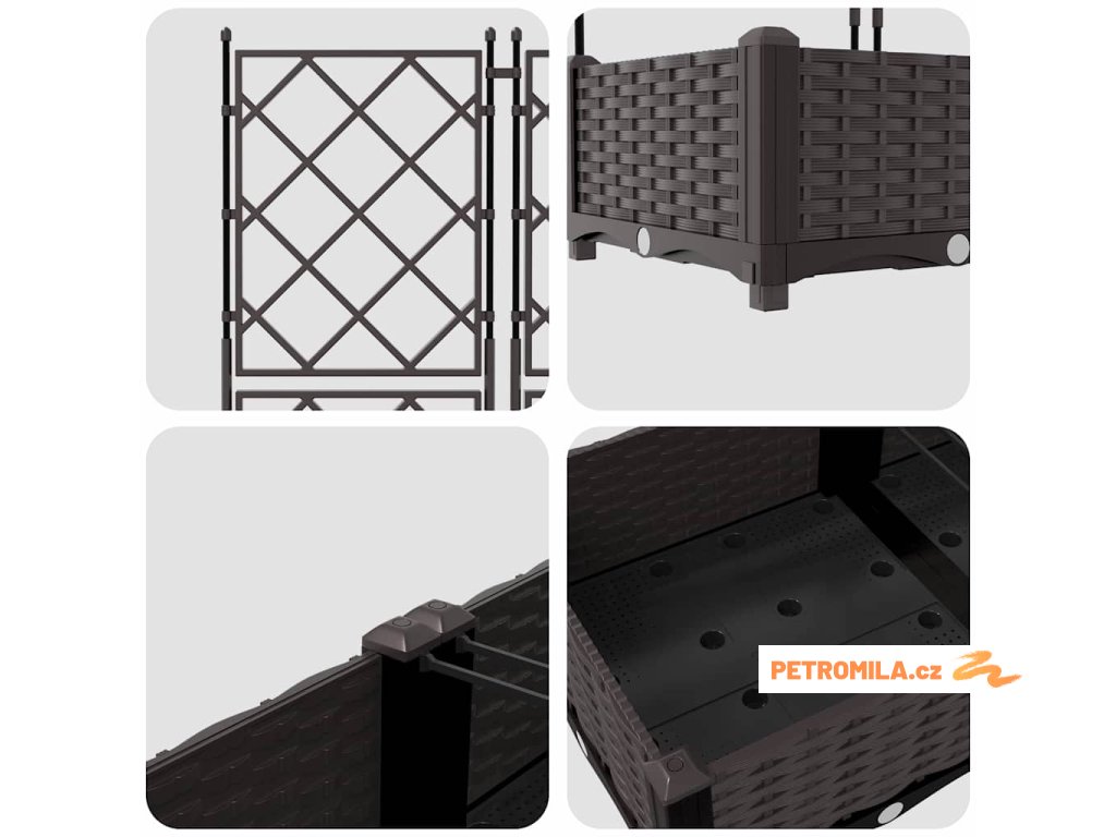 - Integrovaná treláž: Treláž podporuje šplhající rostliny, takže využívá vertikální prostor a vylepšuje vzhled vaší zahrady. Ať už pěstujete barevné vinné révy, nebo ukazujete dary přírody, treláž spojuje krásu s praktičností a podněcuje vaši kreativitu.