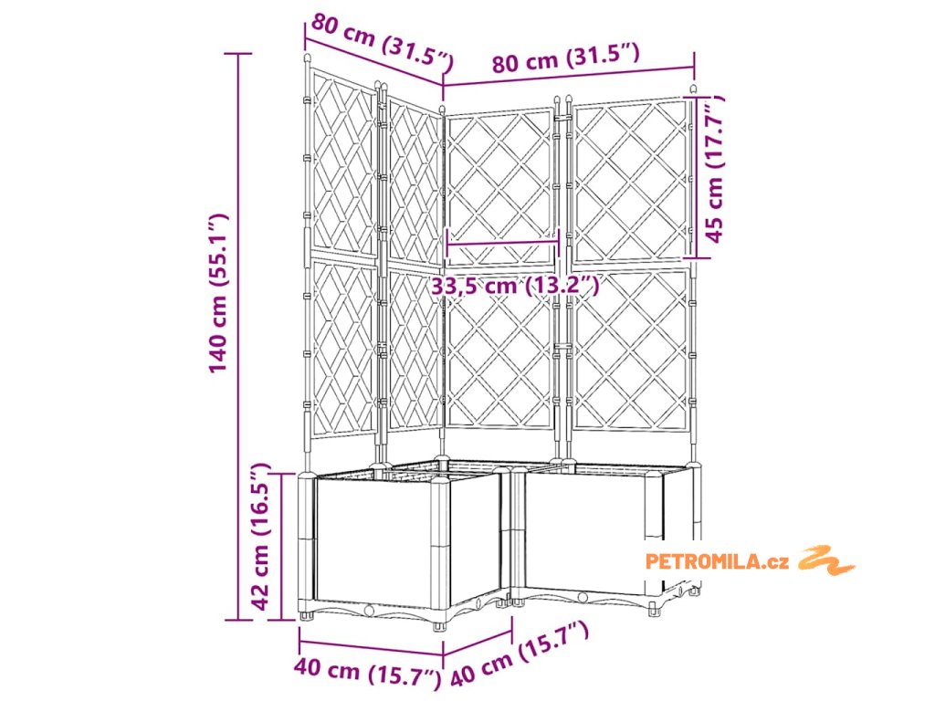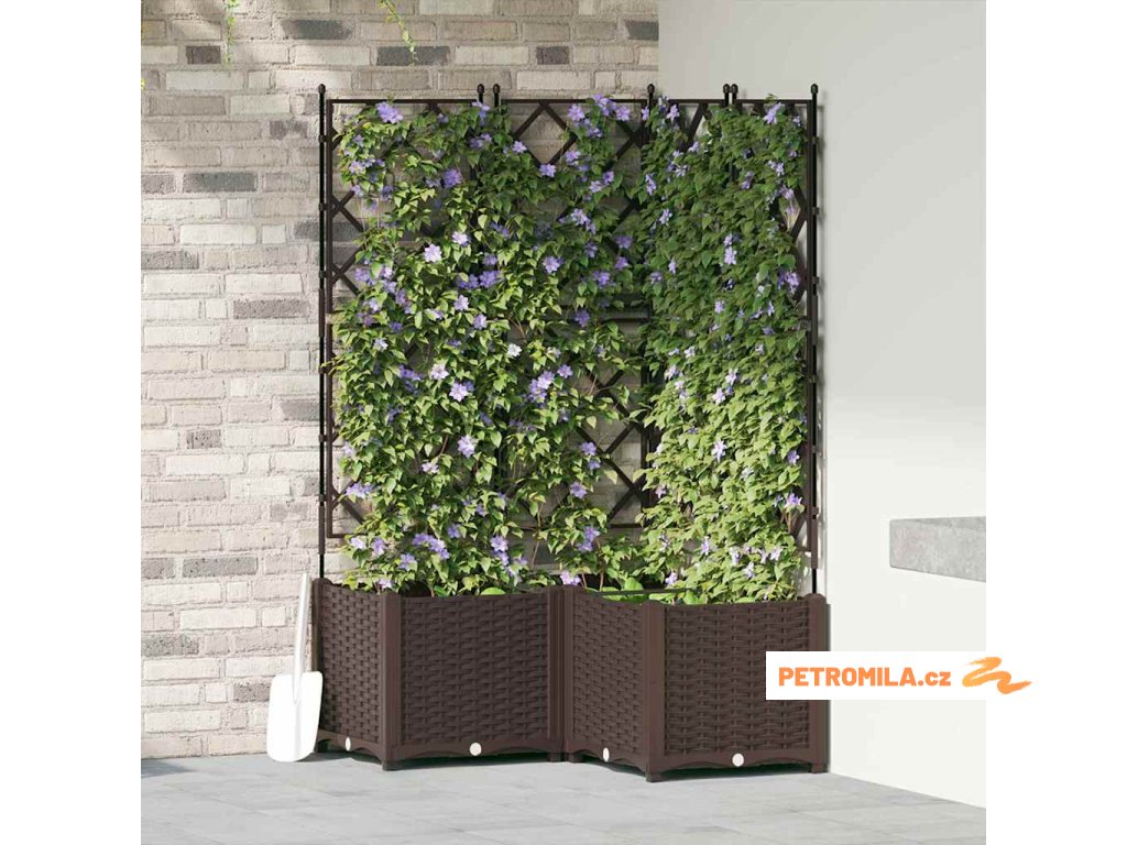 Zahradní květináč s trellisem 3 pcs Hnědá 80 x 80 x 143 cm PP