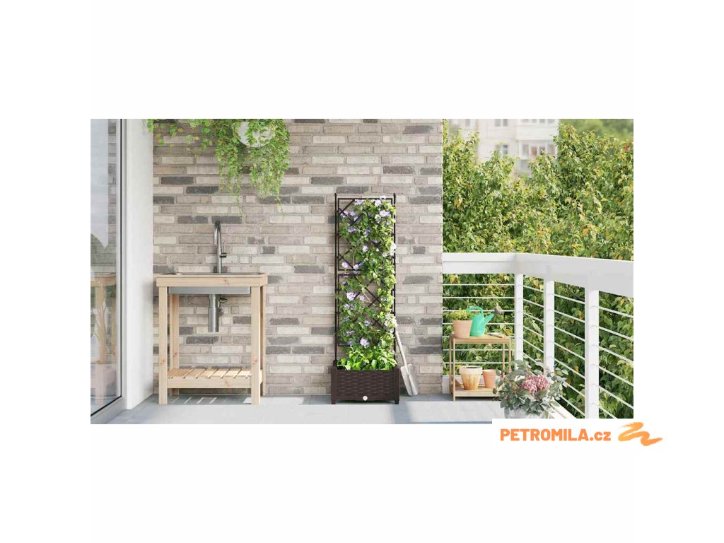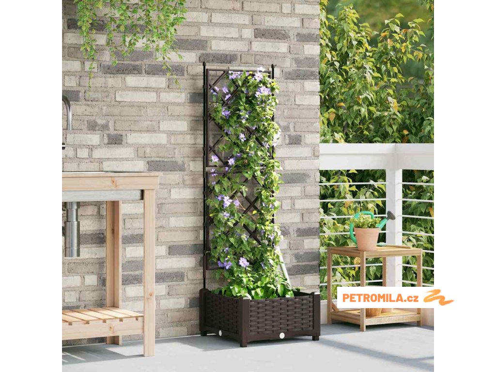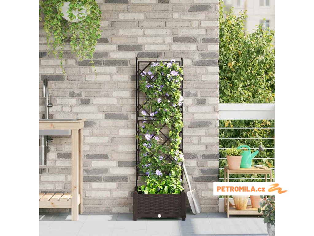 Zahradní květináč s trellisem Hnědá 40 x 40 x 125.5 cm PP