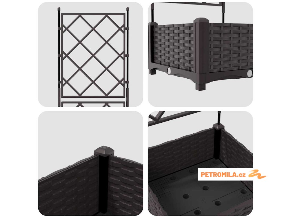 - Integrovaná treláž: Treláž podporuje šplhající rostliny, takže využívá vertikální prostor a vylepšuje vzhled vaší zahrady. Ať už pěstujete barevné vinné révy, nebo ukazujete dary přírody, treláž spojuje krásu s praktičností a podněcuje vaši kreativitu.