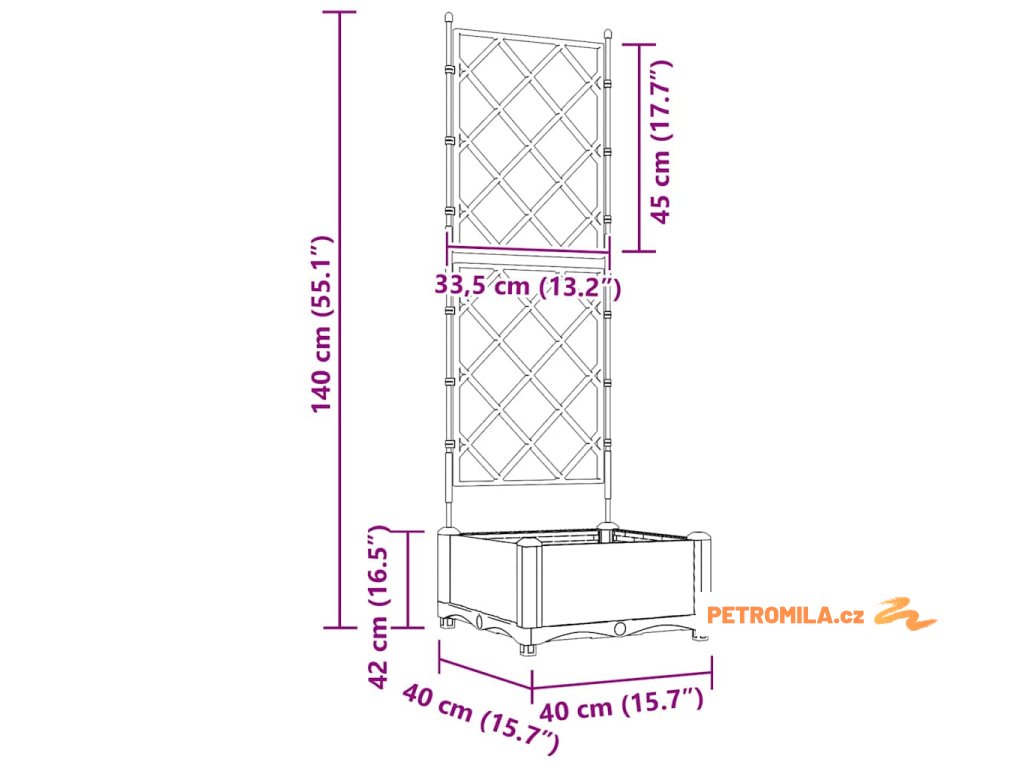 Podívejte se na tenhle moderní zahradní truhlík s treláží! Opravdu to zlepší jak jeho užitečnost, tak vzhled v jakémkoli venkovním prostoru. Jeho elegantní obdélníkový tvar kombinuje současný styl s praktickými prvky a matný povrch skvěle ladí s jednoduchostí moderního designu. Je to ideální volba pro nadšené zahradníky nebo každého, kdo chce osvěžit svůj domov, a ukáže krásné rostliny na jeho neprůhledném pozadí a vnesou šmrnc do vaší zahrady nebo terasy.