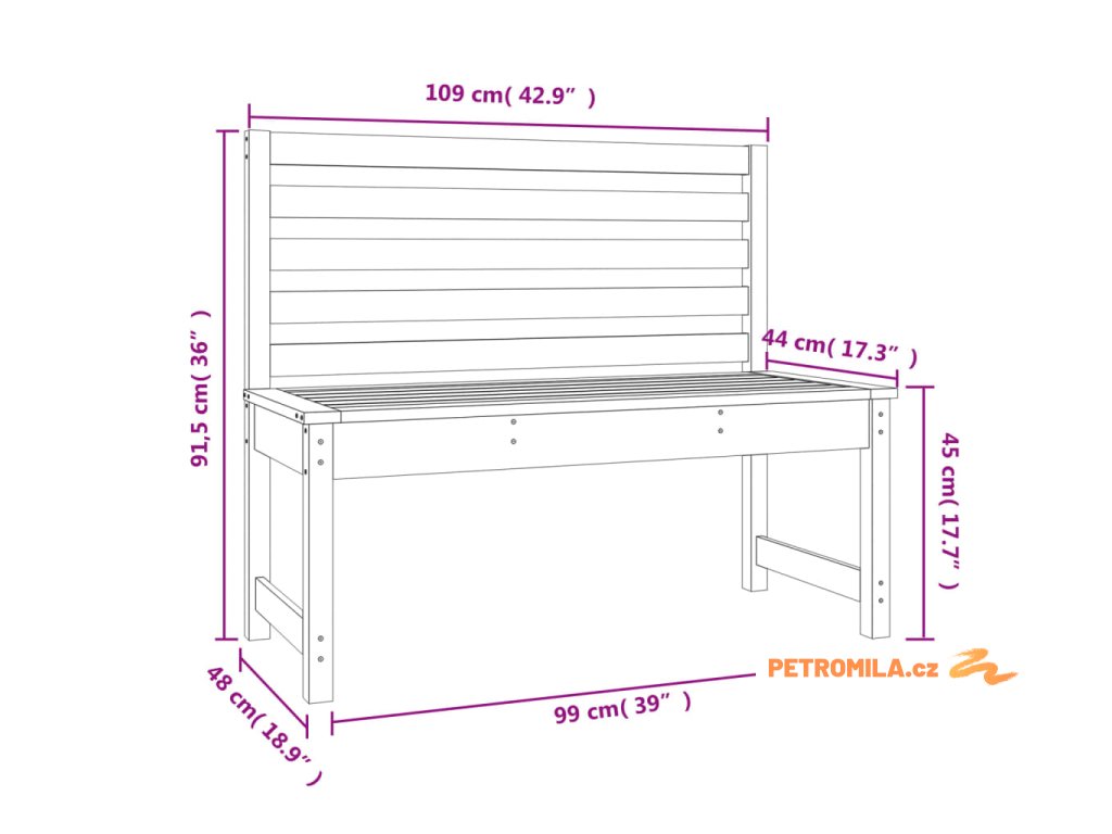 Zahradní lavice 109 cm masivní borové dřevo