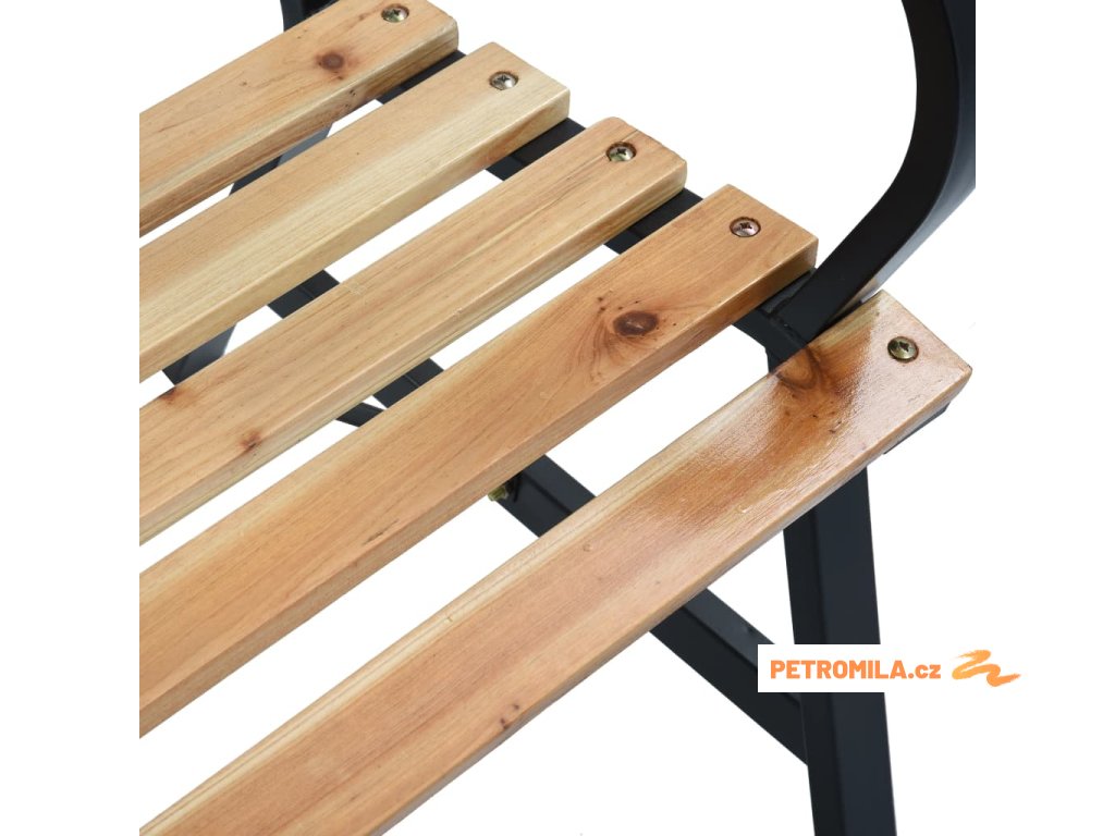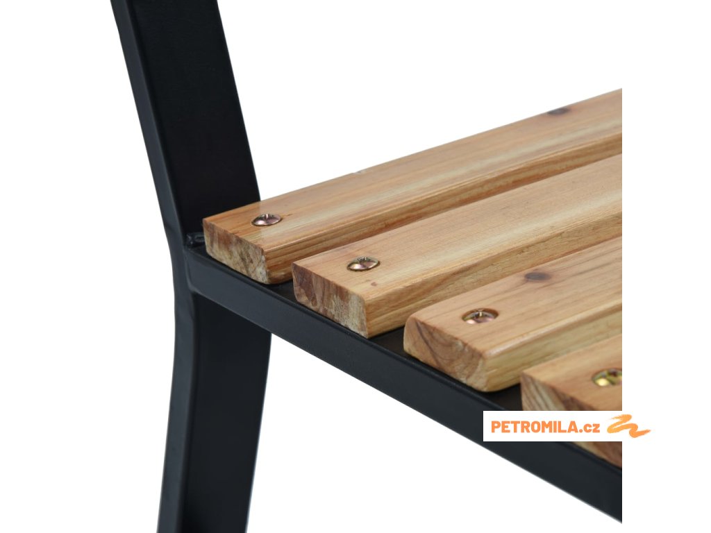 - Materiál: dřevěný sedák + ocelový rám + litinové opěradlo
