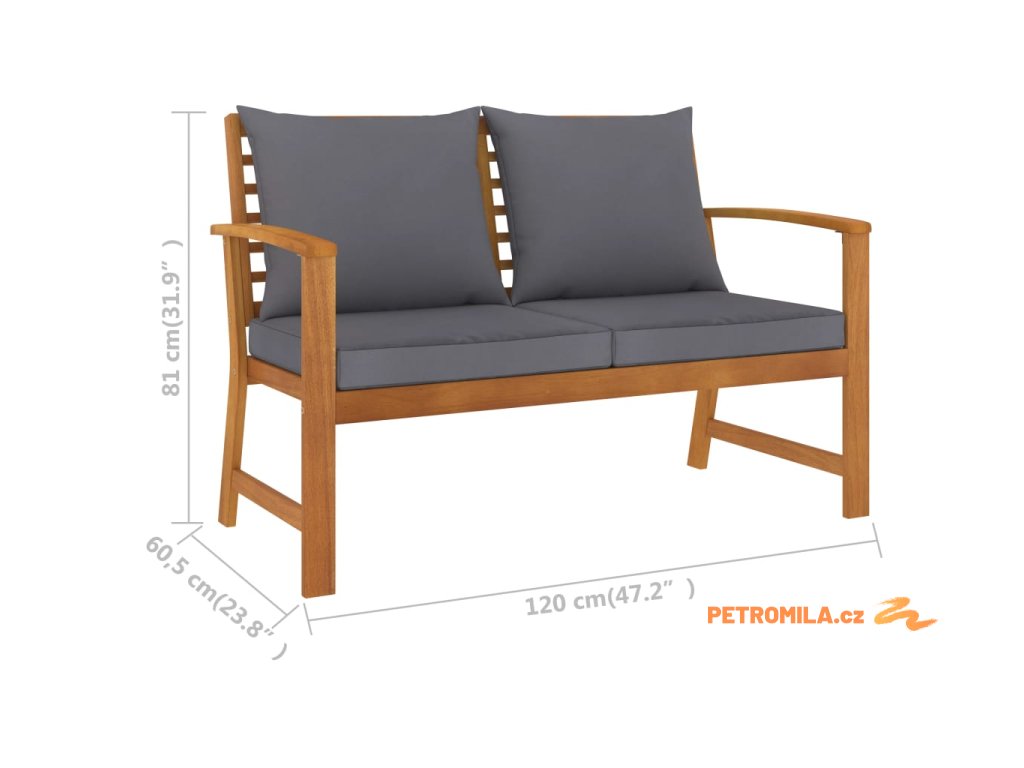 Zahradní lavice 120 cm tmavě šedá poduška masivní akácie
