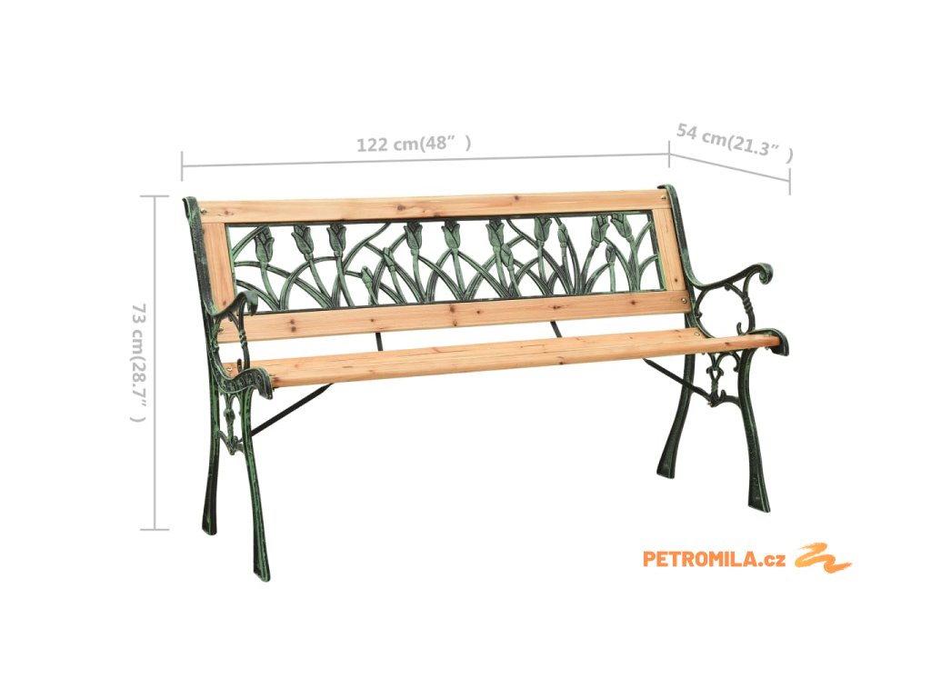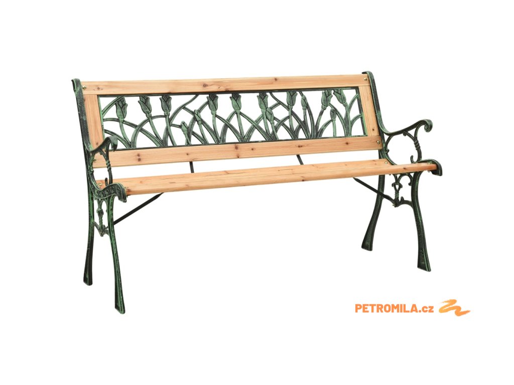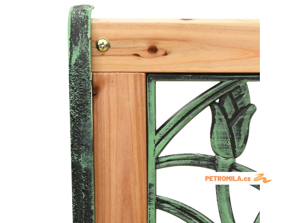 Zahradní lavice je vyrobená z masivního jedlového dřeva, a proto je pevná a má dlouhou životnost. Má také pevné litinové nohy, které jsou velmi stabilní. Dekorativní opěradlo z PVC s tulipánovým vzorem je vynikající doplněk na zápraží vašeho domova.