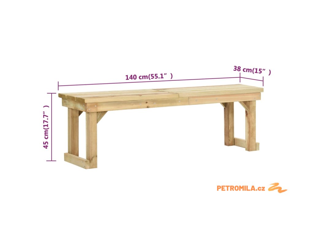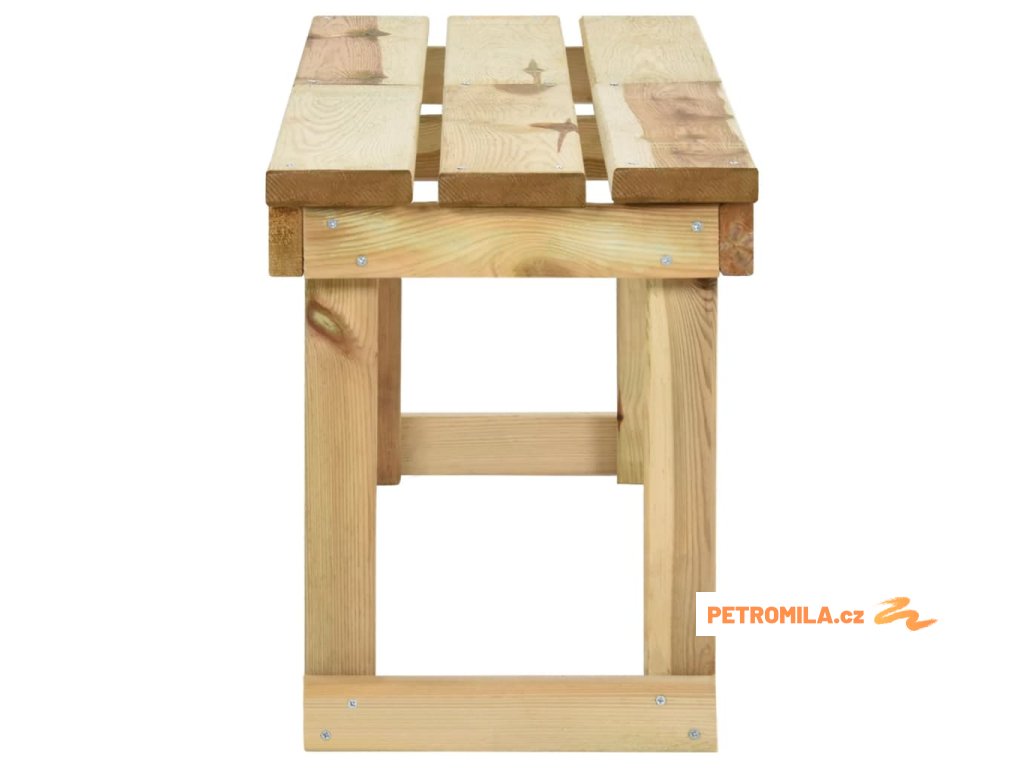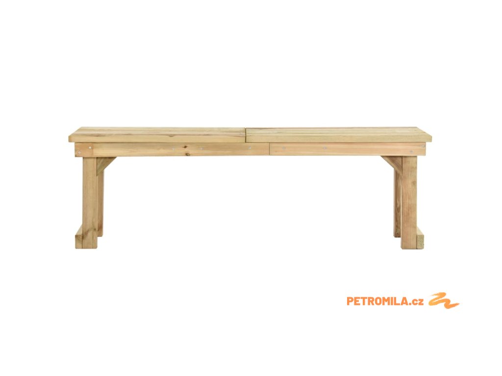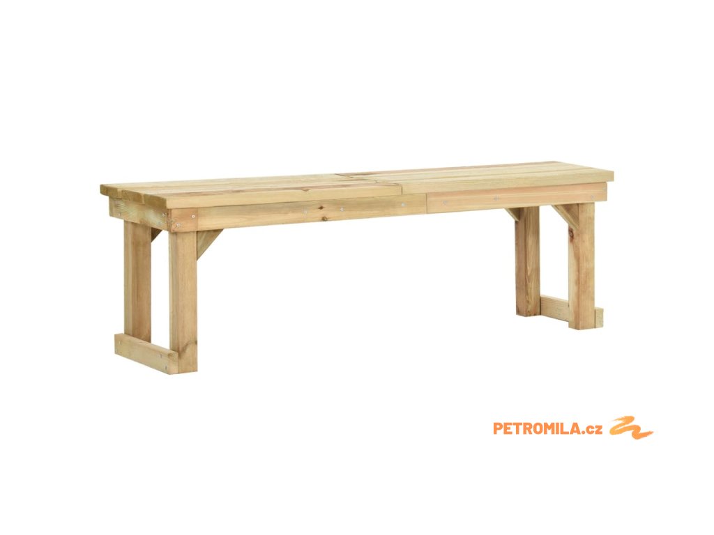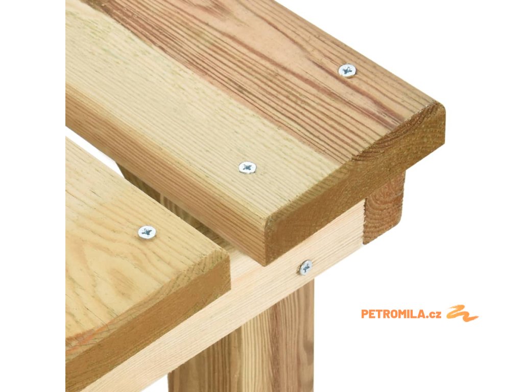 Robustní lavice je vyrobena z impregnovaného borového dřeva, má dlouhou životnost a je odolná vůči povětrnostním vlivům a hnilobě.